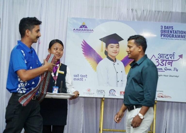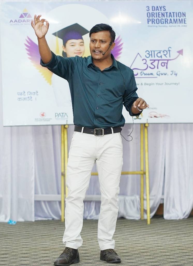 Facilitated a one-day Leadership Development Training for the students of Adarsha School of Management, Birtamode, designed to enhance their personal growth, confidence, and leadership potential. The interactive session focused on essential leadership qualities such as communication, teamwork, decision-making, and emotional intelligence – all vital skills for emerging hospitality professionals.